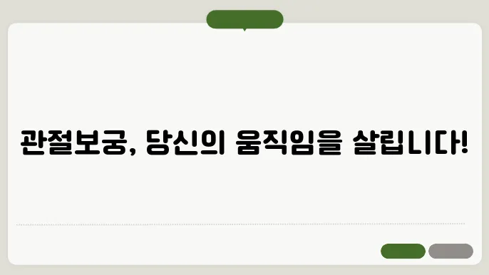 "관절 보궁의 효과는 단순한 통증 완화 이상의 의미가 있습니다. 내 몸을 생각하는 시간이 필요합니다."